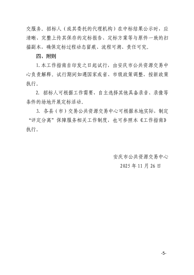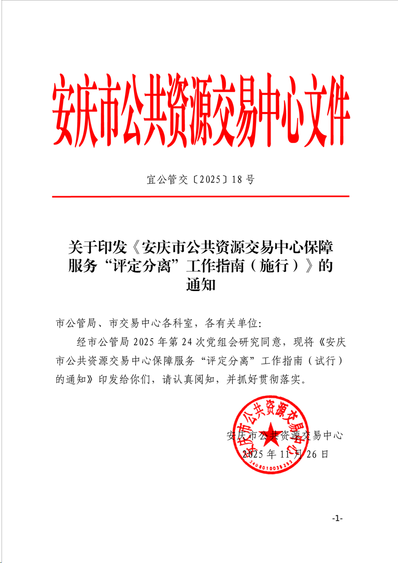 關(guān)于印發(fā)《安慶市公共資源交易中心保障服務(wù)“評(píng)定分離”工作指南(試行)》的通知